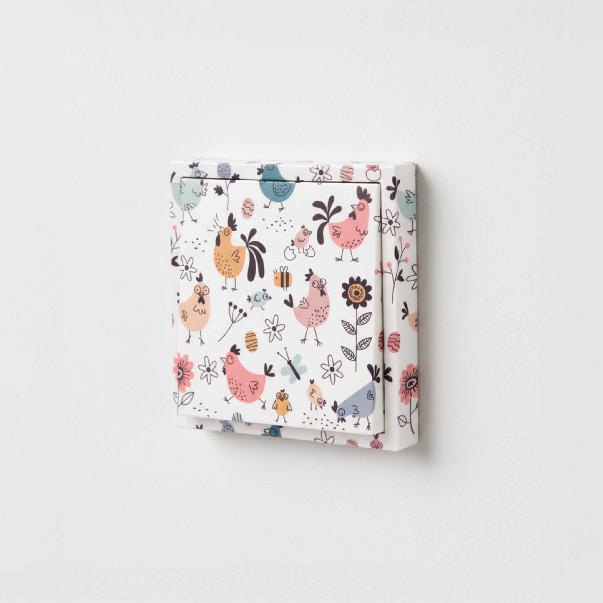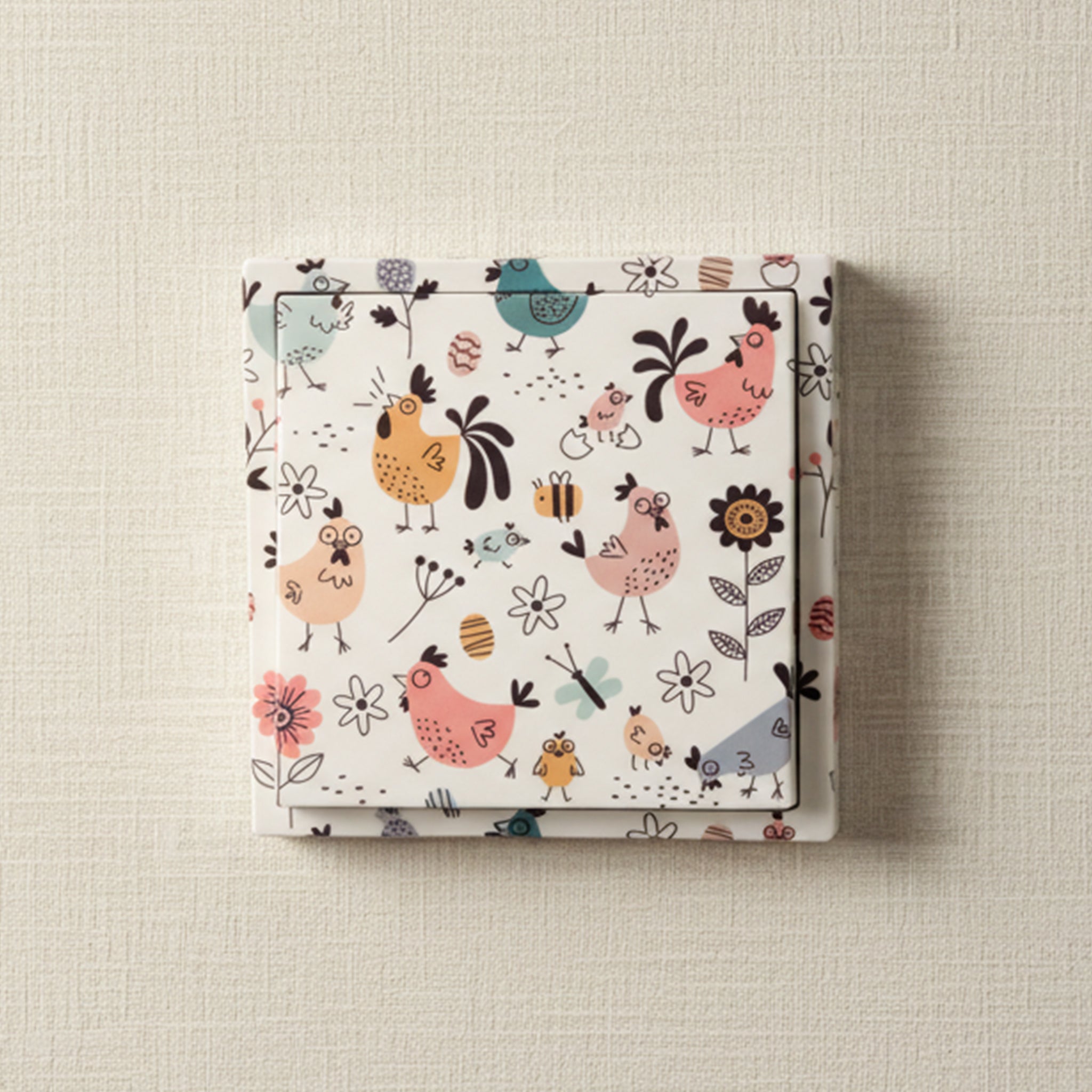 Ein fröhliches Chaos, ein wildes Gegacker - mit "Hühnerhaufen" wird jeder Klick zum Vergnügen! Dieser Lichtschalter bringt Leben ins Kinderzimmer und sorgt für gute Laune bei kleinen und großen Fans des tierischen Trubels.